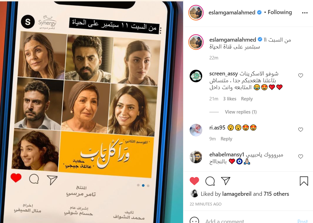 روج الفنان إسلام جمال لحكاية عائلة جيجي من خلال طرحه البوستر الرسمي للحكاية، المكونة من خمس حلقات، من مسلسل ورا كل باب، والمقرر عرضه خلال الفترة المقبلة، عبر شاشة قناة الحياة.