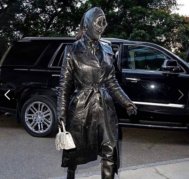 ونشرت كيم كاردشيان مجموعة من الصور، عبر حسابها الخاص بموقع الصور والفيديوهات القصيرة انستجرام، وظهرت فيها مرتدية بدلة جلد سوداء اللون، وقناعًا أسود يخفي كامل وجهها، ولم يطهر منها سوى شعرها.
