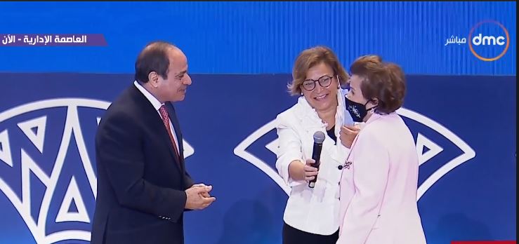 ورحب الرئيس السيسي، بطلب أبو الحسن، وصعدت والدتها إلى المنصة لمصافحة الرئيس والتصوير معه، وقالت: تقديري لجهودك الجبارة في الإصلاح والتنمية والاستثمار، وما أراه بمصر شيء مذهل للغاية، هنيئا لمصر ولشعب مصر العظيم، وأنت قدوة للرؤساء في العالم العربي.
