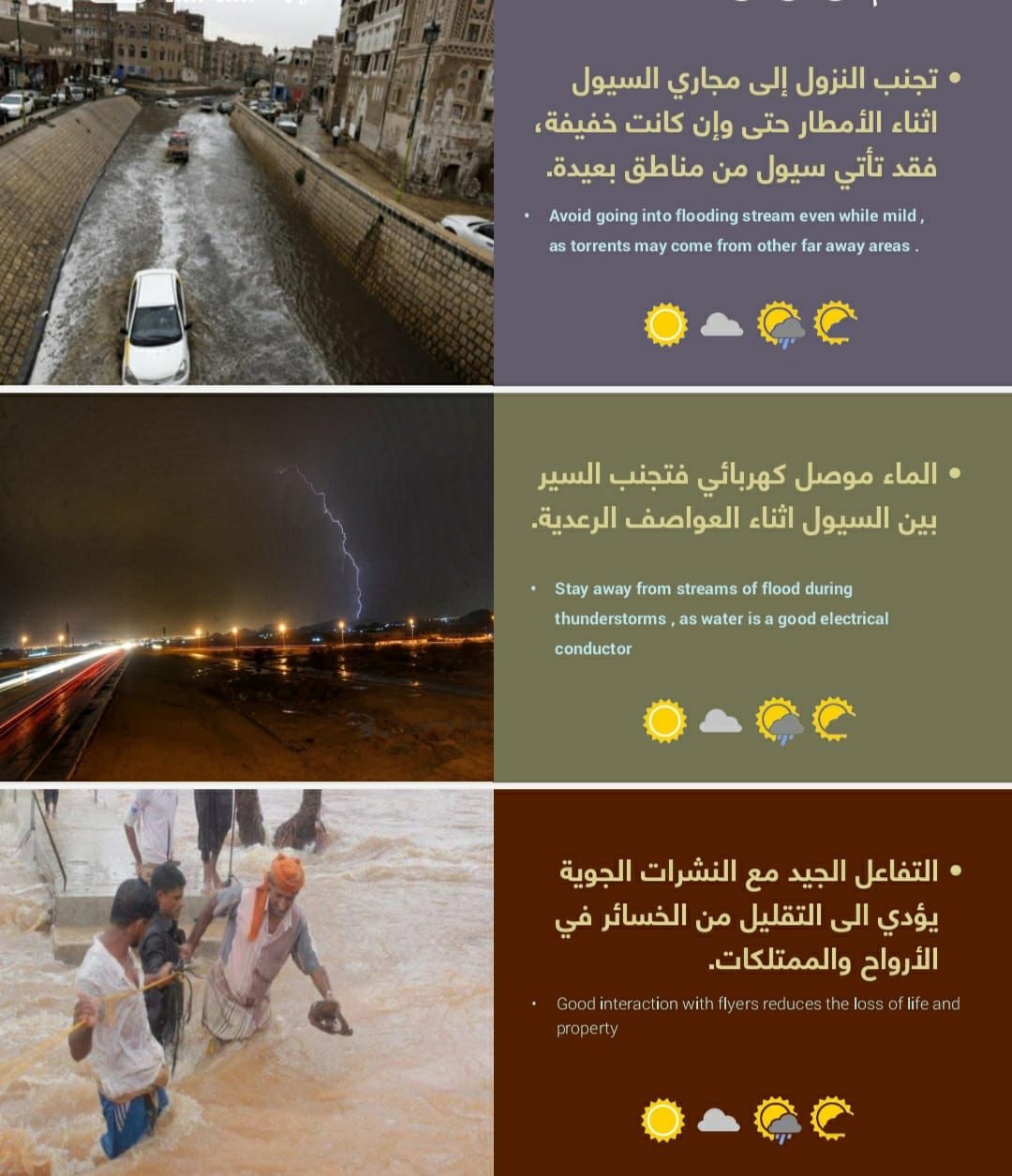 - احرص على متابعة النشرة الجوية قبل السفر، وتوخي الحذر على الطرق
