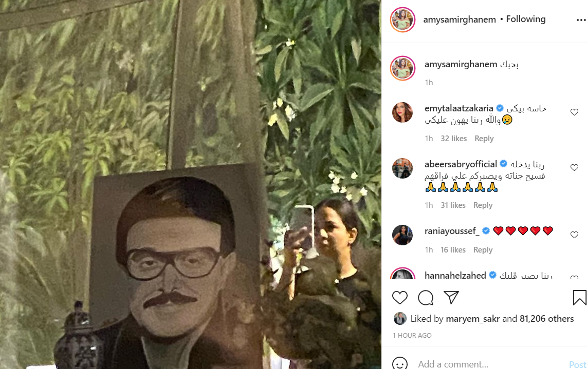 أول ظهور لإيمي سمير غانم على انستجرام بعد وفاة والديها..بجوار بورترية لسمير غانم
