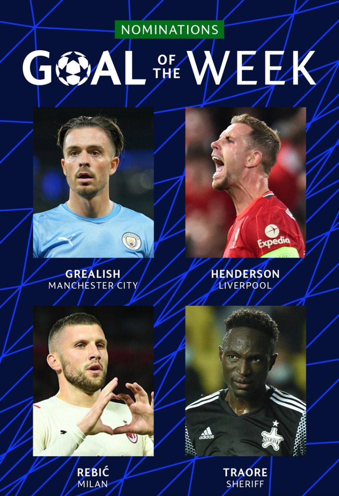 نشر الحساب الرسمي لبطولة دوري أبطال أوروبا عبر حسابه الرسمي على موقع التواصل الاجتماعي تويتر، هدف الأسبوع، الذي جاء من نصيب آدم تروري، لاعب فريق شريف تيراسبول، في مباراة فريقه أمام فريق شاختار الأوكراني على ملعب بولشايا سبورتفنايا معقل فريق شريف المولدوفي.