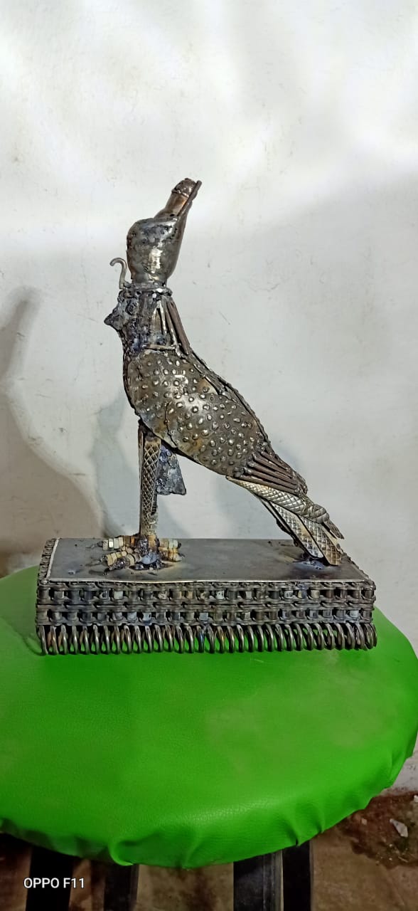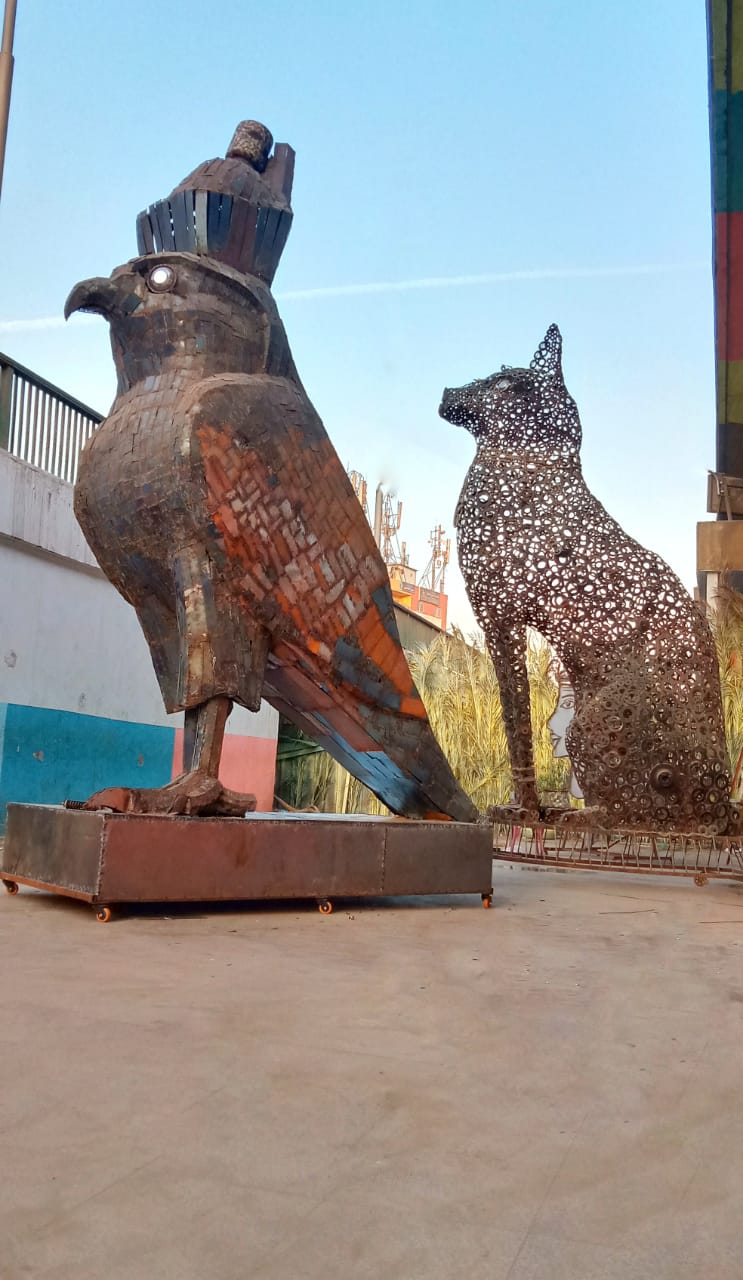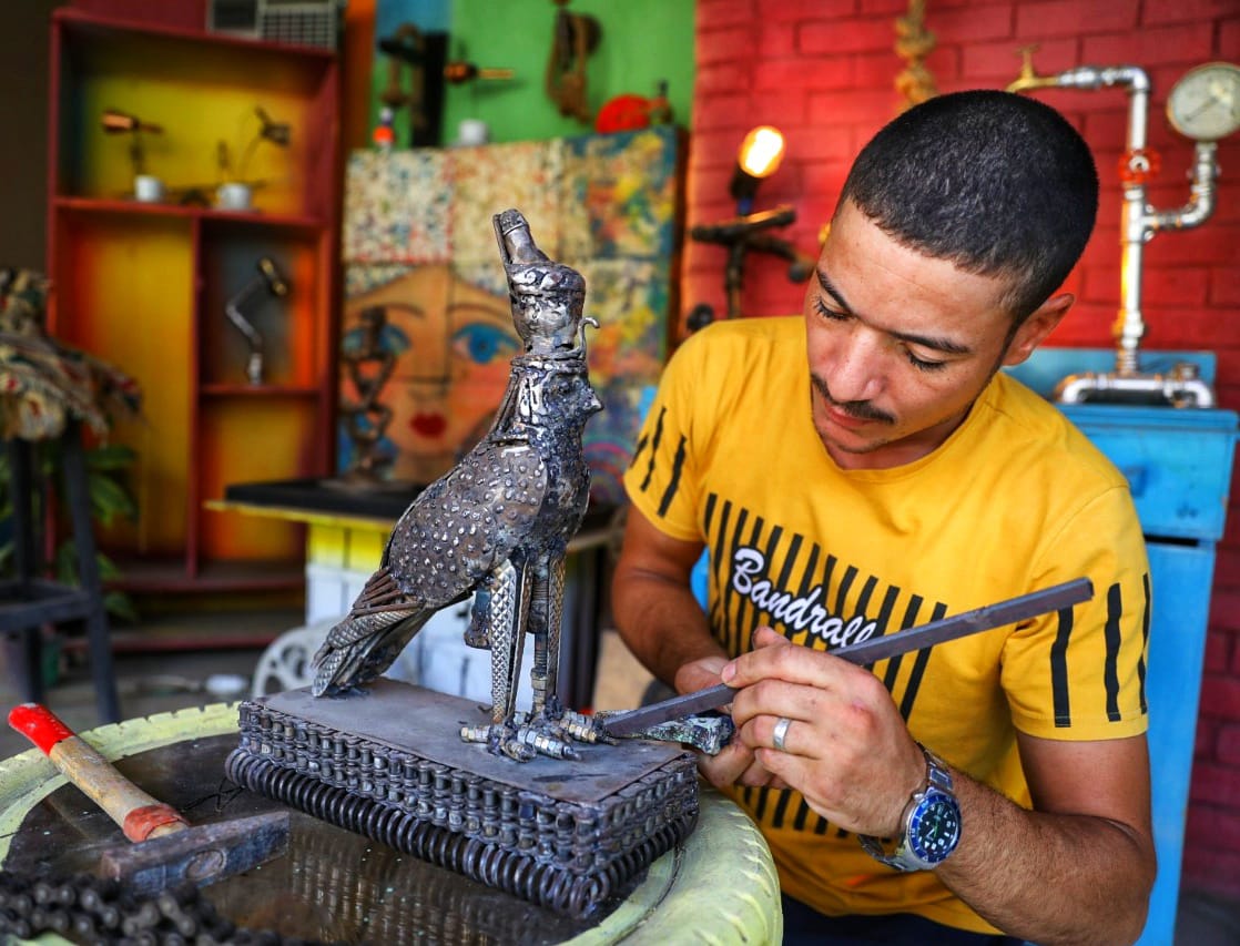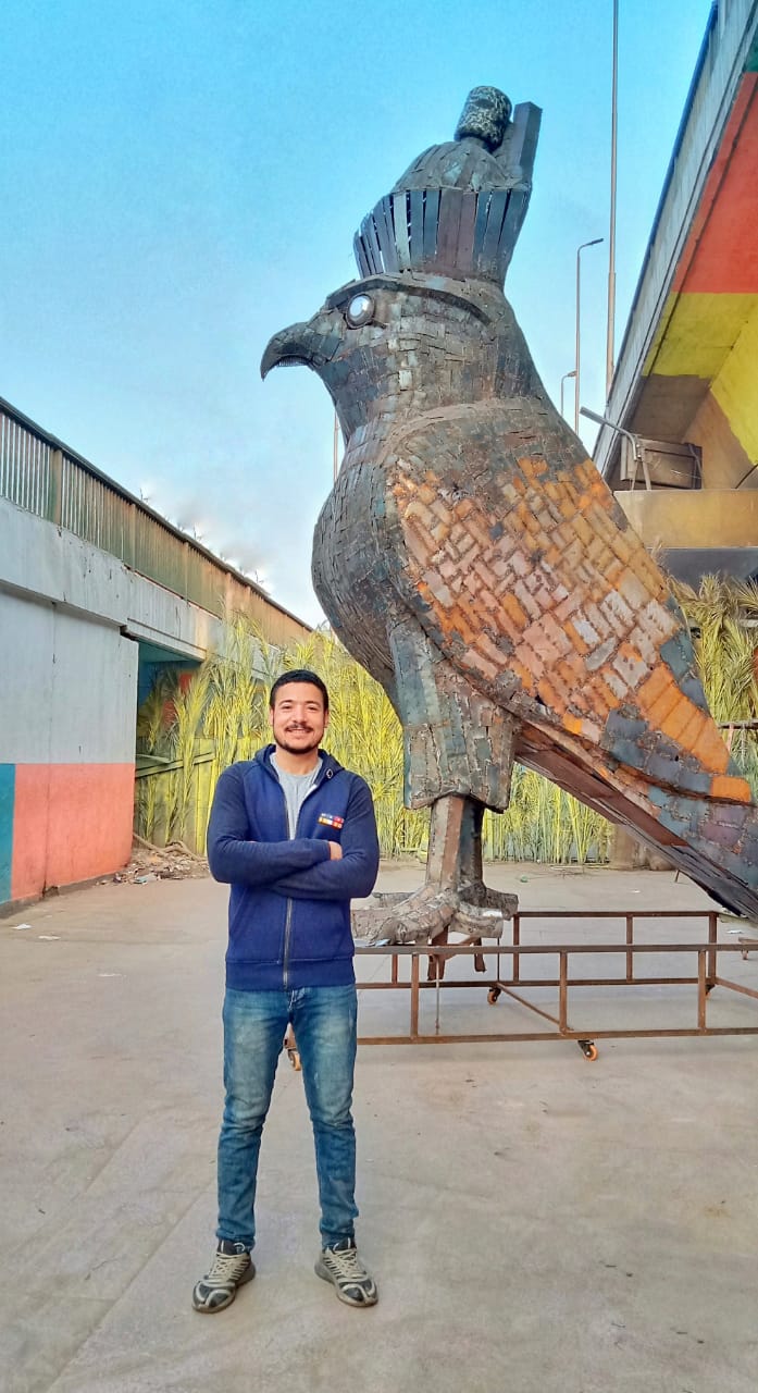 نص طن حديد خردة.. شاب يبدع في تصميم تمثال حورس بارتفاع 6 أمتار | صور