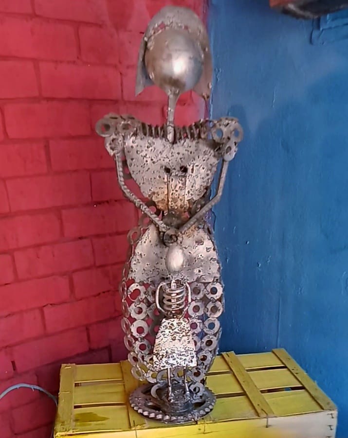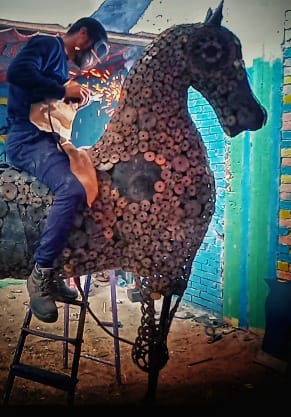 «في فترات النحت مش مطلوب قوي، فقررت أضيف لهوايتي أعمال فنية اقدر أبيعها، بحيث اكمل في نفس المجال ماسيبوش، وعجبني شغل إعادة تدوير للمعادن الصلبه زي المواسير الحديد ونفذت منها أشكال كتير»، هكذا يوضح صلاح مثابرته لتحقيق حلمه.