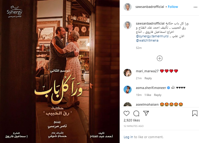 أعلنت الفنانة سوسن بدر بدء طرح حكاية رق الحبيب، عبر منصة watchit الإلكترونية، وهي ثالث حكايات مسلسل ورا كل باب، وذلك من أجل الترويج لها وتشويق جمهورها لمتابعة العمل.