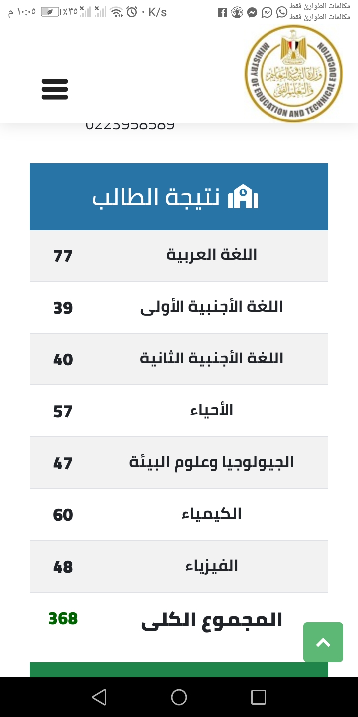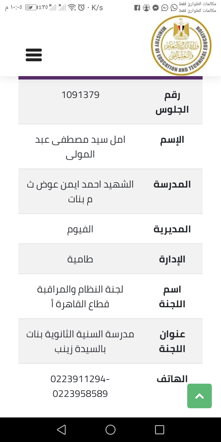 النتيجة الفعلية للطالبة من موقع الوزارة