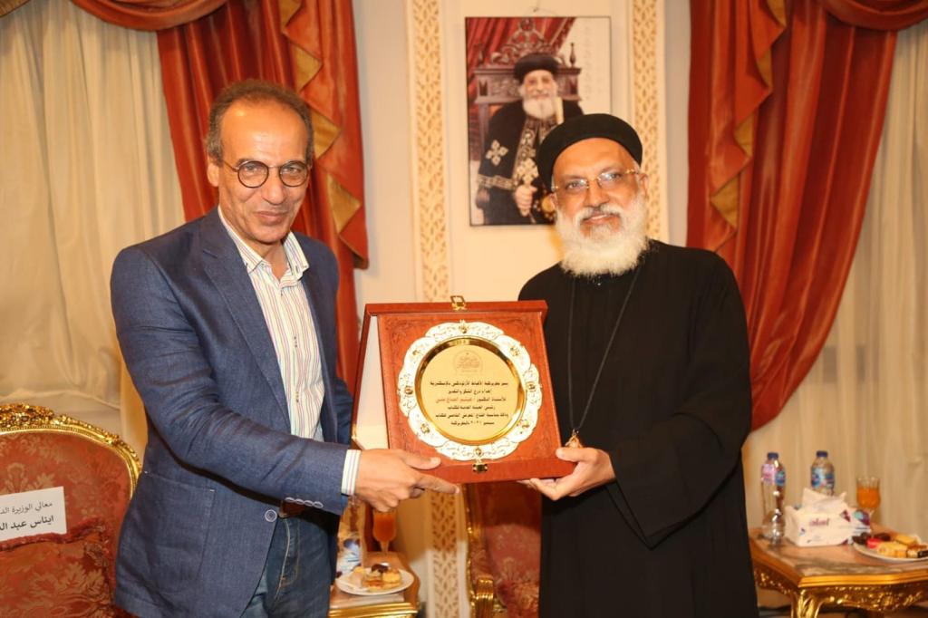 وفي نهاية اللقاء أهدى القمص إبرآم إميل درع الكاتدرائية لوزيرة الثقافة ومحافظ الإسكندرية وللدكتور هيثم الحاج لجهودهم في نشر الوعي والتنوير، كما أهدته وزيرة الثقافة درع الوزارة التذكاري تقديرًا لجهوده المتميزة في نشر الثقافة والمعرفة.