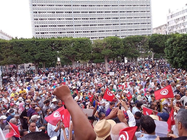 الاحتجاجات التونسية المعارضة للرئيس تأتي استجابة لدعوة عدد من الأحزاب المؤيدة لحركة النهضة، إلى تنظيم وقفة احتجاجية، اليوم السبت، أمام المسرح البلدي بالعاصمة للتعبير عن رفضهم للقرارات التي أعلنها الرئيس قيس سعيد، والمتمثلة في تجميد عمل البرلمان ورفع الحصانة عن أعضائه، كما تأتي هذه الدعوات وسط انقسام في المجتمع، حيث يدعم جزء منه الإجراءات التي أعلنها الرئيس، فيما يرى الجزء الآخر أن هذه الإجراءات هي تهديد للحريات والديمقراطية.
