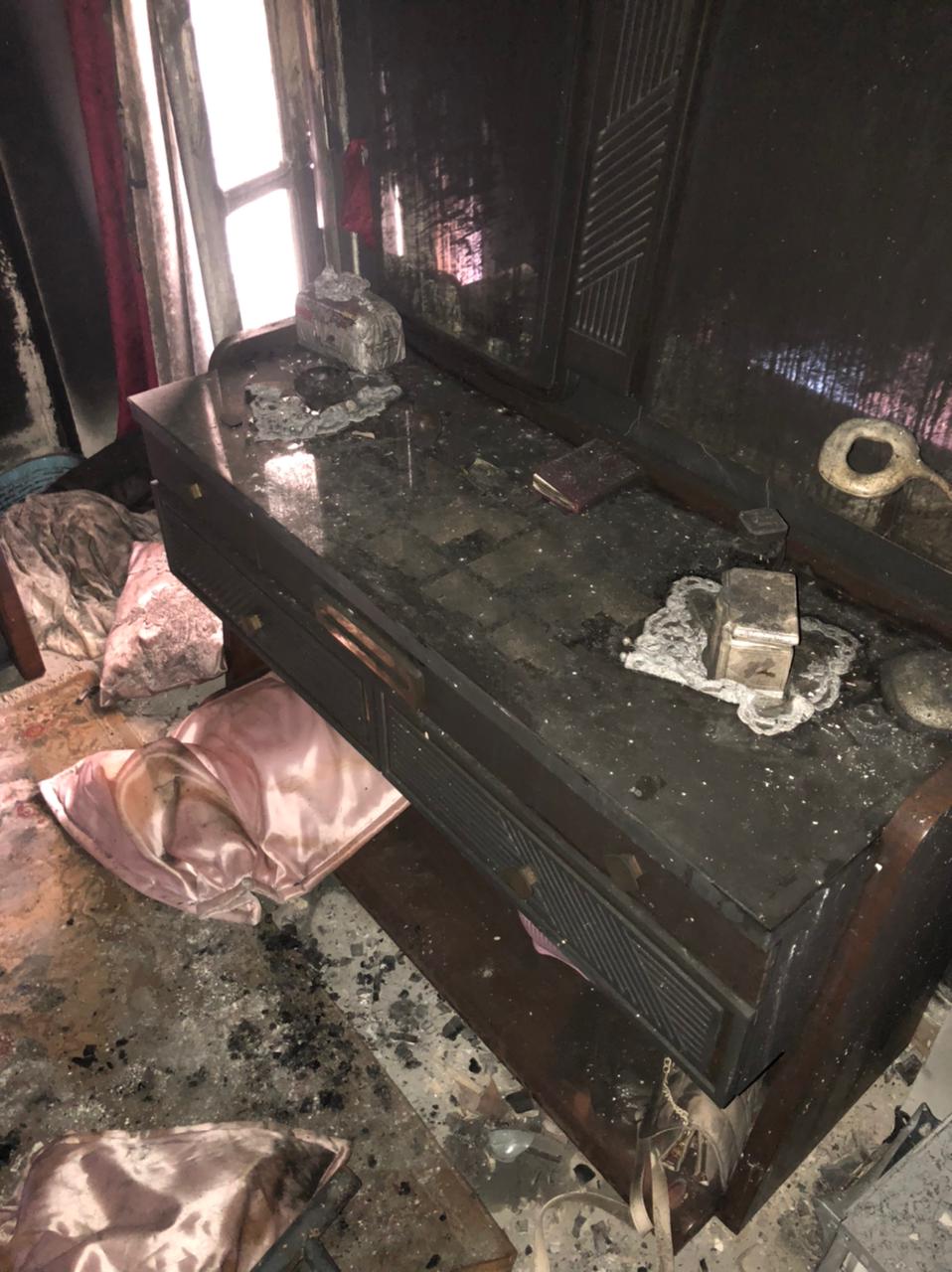 وتابع أن ألسنة النيران امتدت في كل مكان، ولم يستطع سوى إنقاذ عروسته حيث التهمت النيران كل محتويات المنزل.