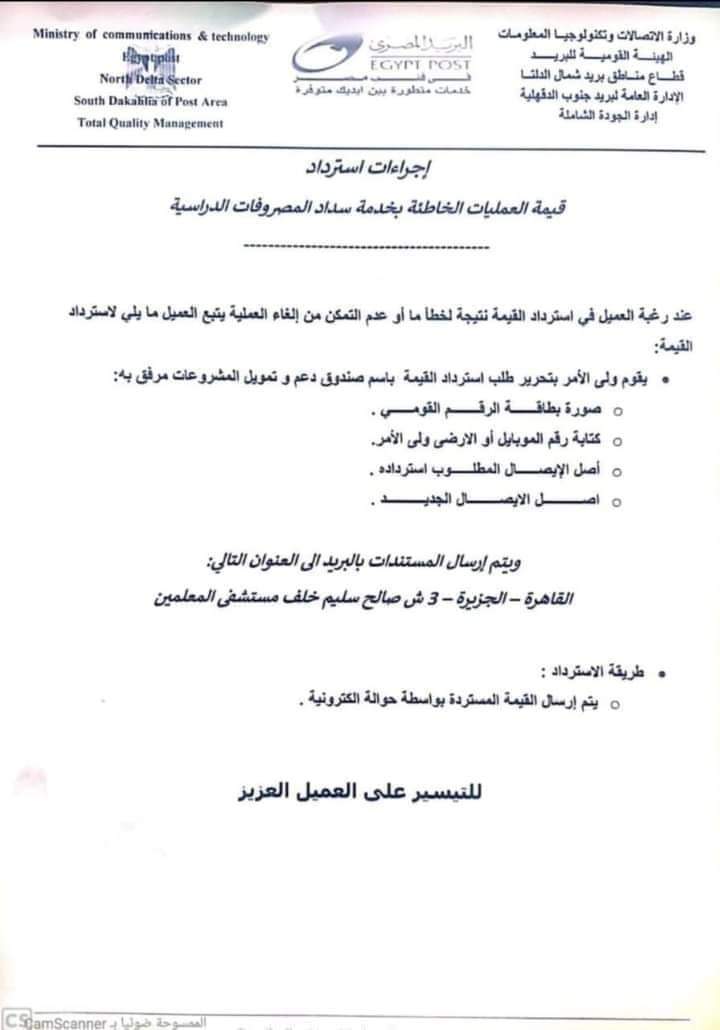 ننشر إجراءات استرداد قيمة العمليات الخاطئة بـ خدمة سداد المصروفات الدراسية