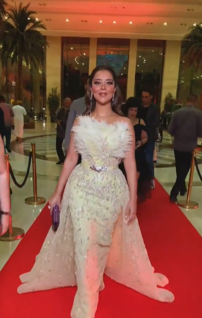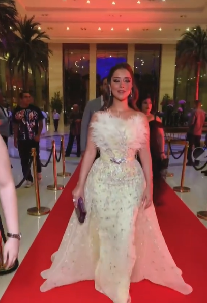 كما ظهرت أيضًا المطربة بلقيس بإطلالة ناعمة، مرتدية فستانًا فاتح اللون، وشعرها منسدل على ظهرها.