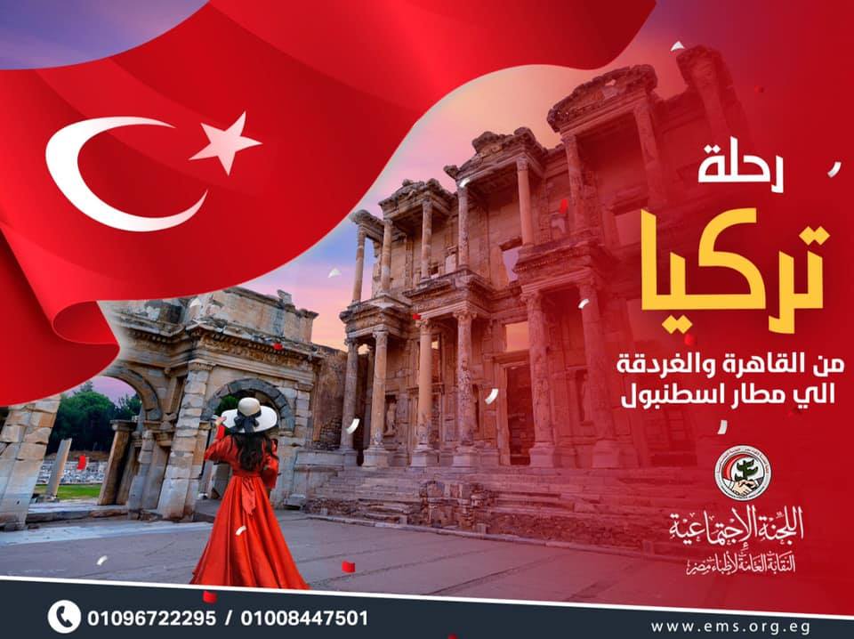 أعلنت اللجنة الاجتماعية بنقابة الأطباء اليوم، نيتها تنظم رحلة سياحية إلى تركيا لمدة 9 أيام، على أن تُقلع الرحلة من مطار القاهرة والغردقة، إلى مطار إسطنبول.