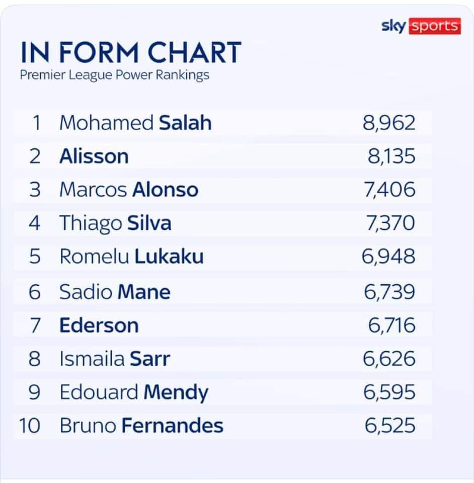 ونجح صلاح في أن يتفوق بفارق خيالي في النقاط على نجوم الدوري الإنجليزي الممتاز بشكل كامل، وتحديدًا على الثنائي روميلو لوكاكو وكريستيانو رونالدو، حيث صنفته سكاي سبورتس في إحصائية لها، أنه الأفضل في البريميرليج حتى الآن بالأرقام والنقاط التي تخضع لنظام حسابي مُعين.