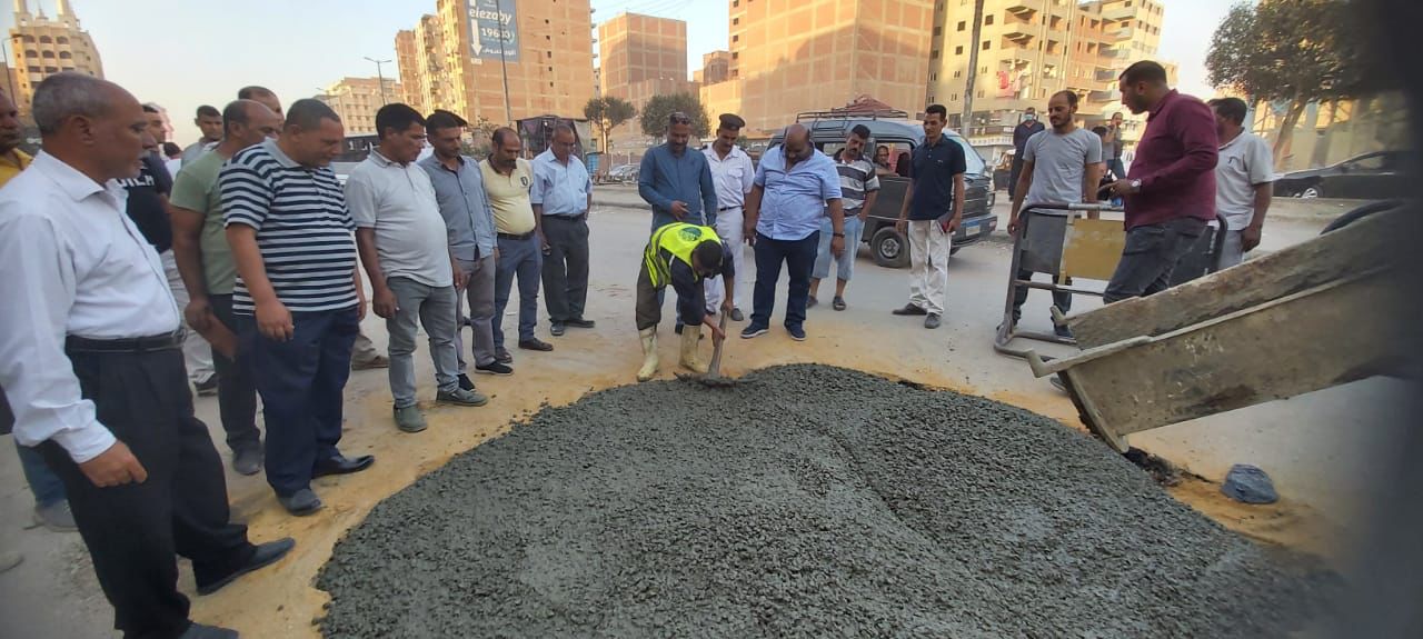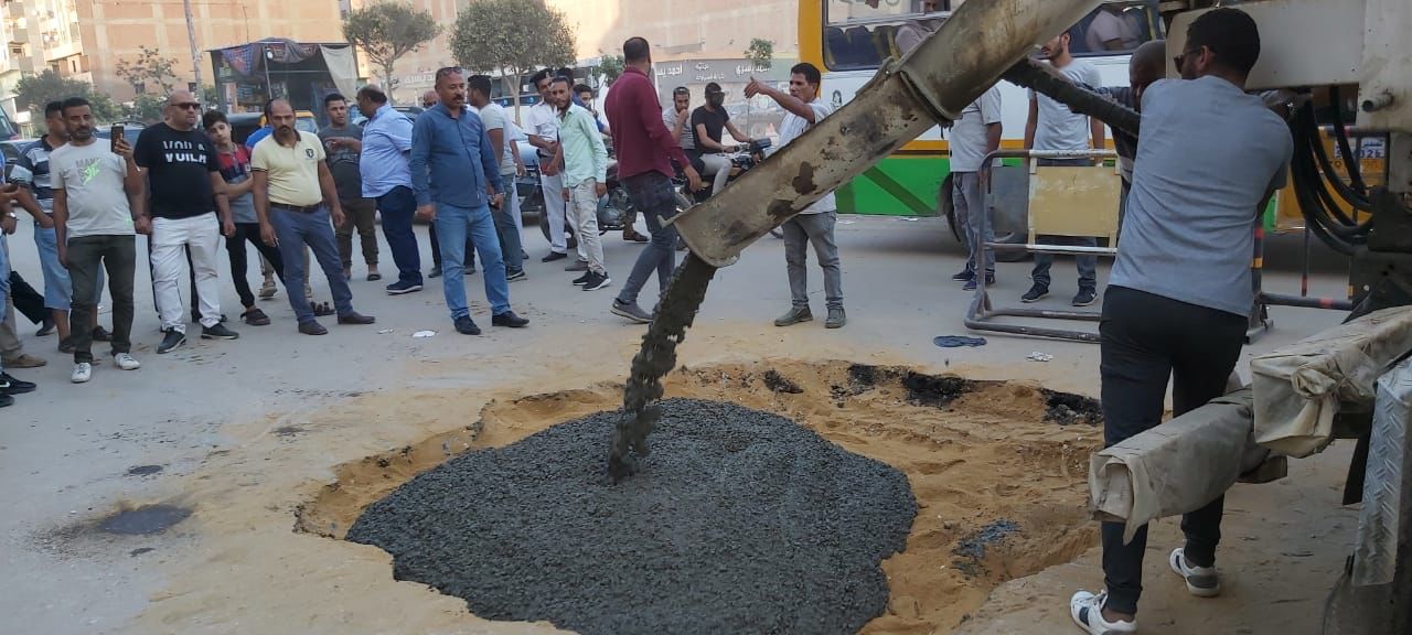 كما تم تغطيتها بطبقه من الخرسانة الجاهزة لإعادة الأمور للسابق وتيسير الحركة المرورية بالطريق والحفاظ على أرواح المواطنين والمركبات.