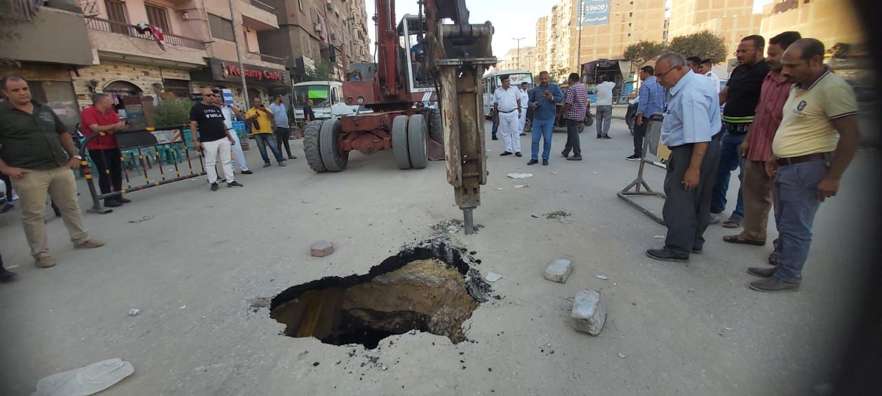 هبوط أرضى بشارع 15 مايو في شبرا الخيمة.. وفرق الطوارئ تواصل المعالجة | صور