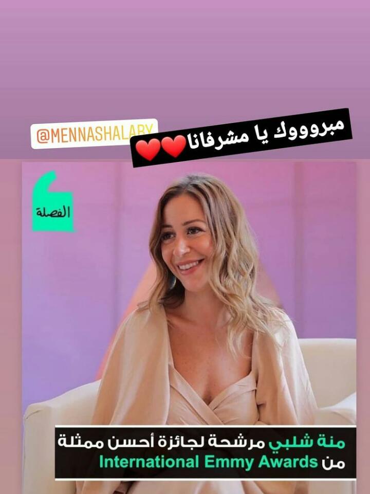 حرص عدد كبير من نجوم الفن على تهنئة الفنانة منة شلبي، لترشيحها لجائزة ايمي، منهم الفنان أحمد رزق، والذي نشر صورة لها عبر خاصية ستوري عبر حسابه الرسمي على موقع انستجرام، وكتب عليها قائلًا: مبروك يا مشرفانا.