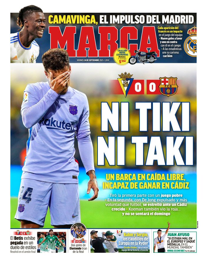 تصدر إدواردو كامافنيجا صحفة غلاف صحيفة ماركا تحتو عنوان كامافينجا..نبض مدريد، وكذلك تناولت الصحيفة المدريدية تعادل برشلونة بصورتها الخاصة تحت عنوان لا تيكي لا تاكا.
