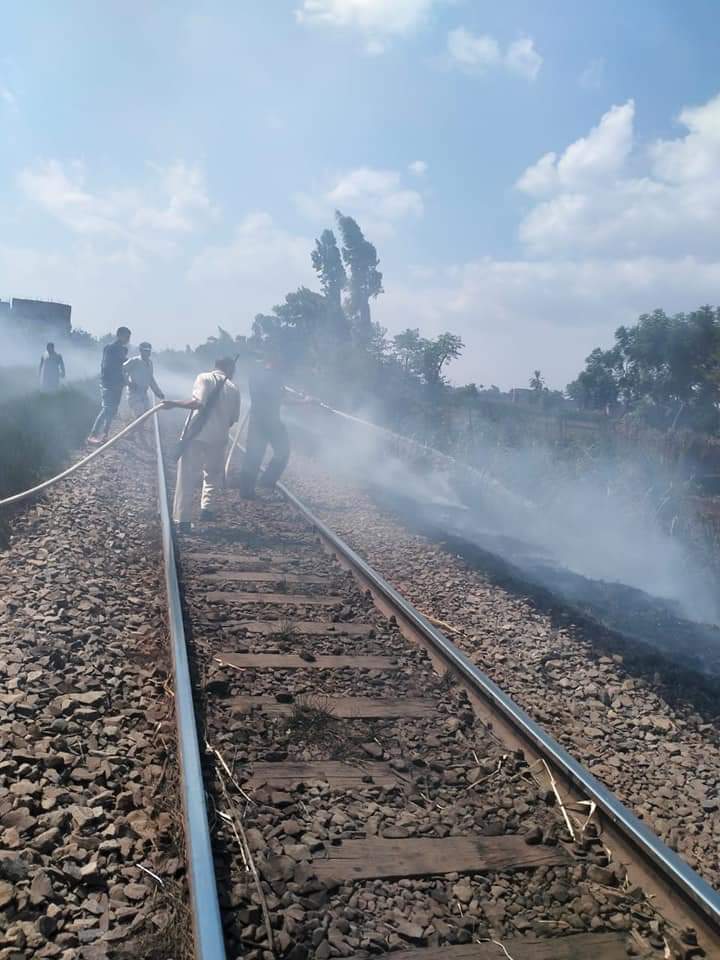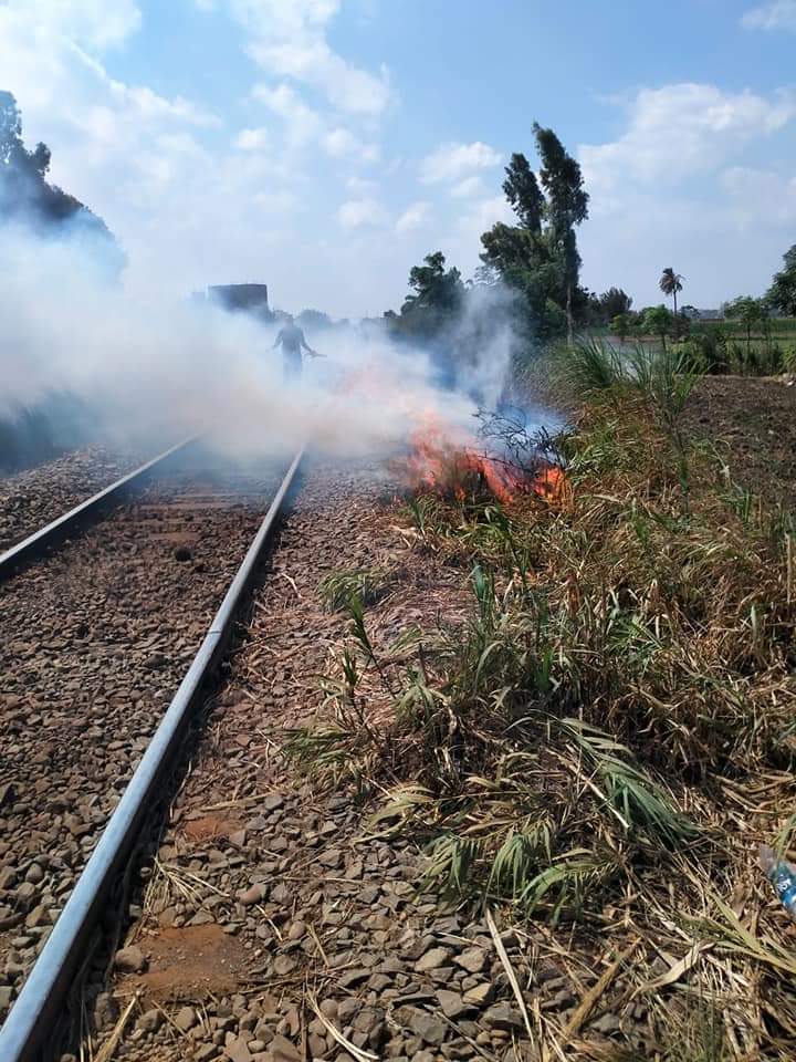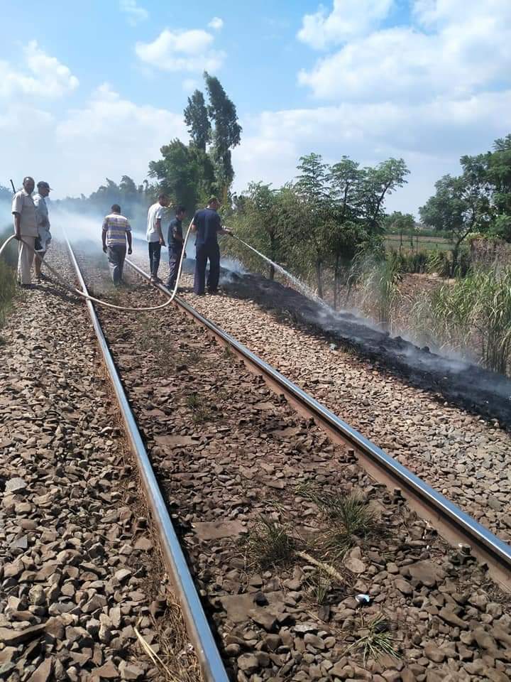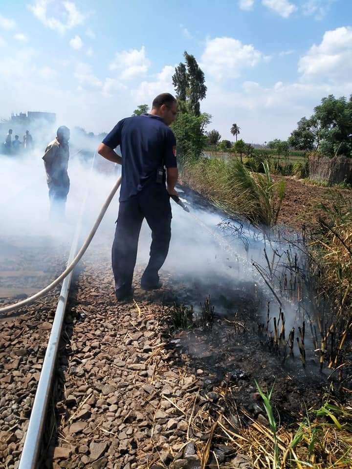الحماية المدنية تسيطر على حريق محدود بجوار شريط السكة حديد بالمنوفية │ صور