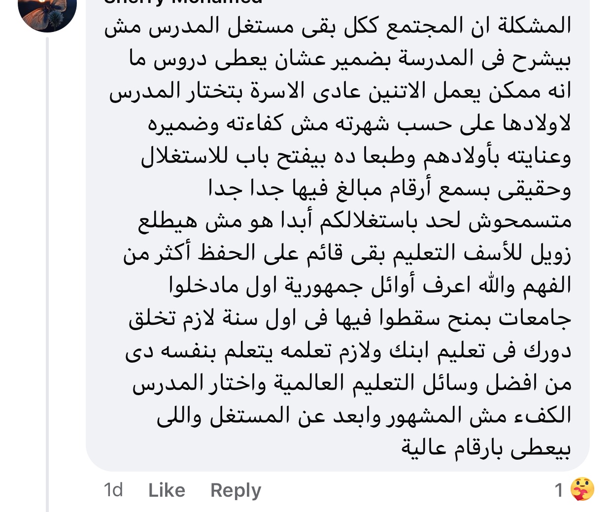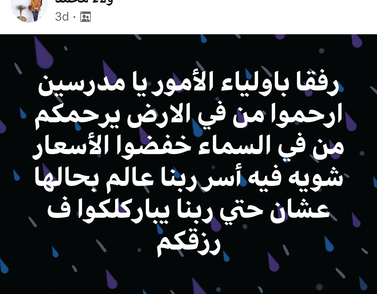 كتبت ولية أمر أخرى عبر موقع التواصل الاجتماعي، فيس بوك، "رفقا بأولياء الأمور يا مدرسين ارحموا من في الأرض يرحمكم من في السماء " وأضافت "خفضوا الأسعار شوية"، وكانت التعليقات على هذا المنشور مثيرة للجدل بين أولياء الأمور والمعلمين، وكانت أبرز التعليقات "الأسرة بتختار المدرس حسب شهرته مش كفاءته".