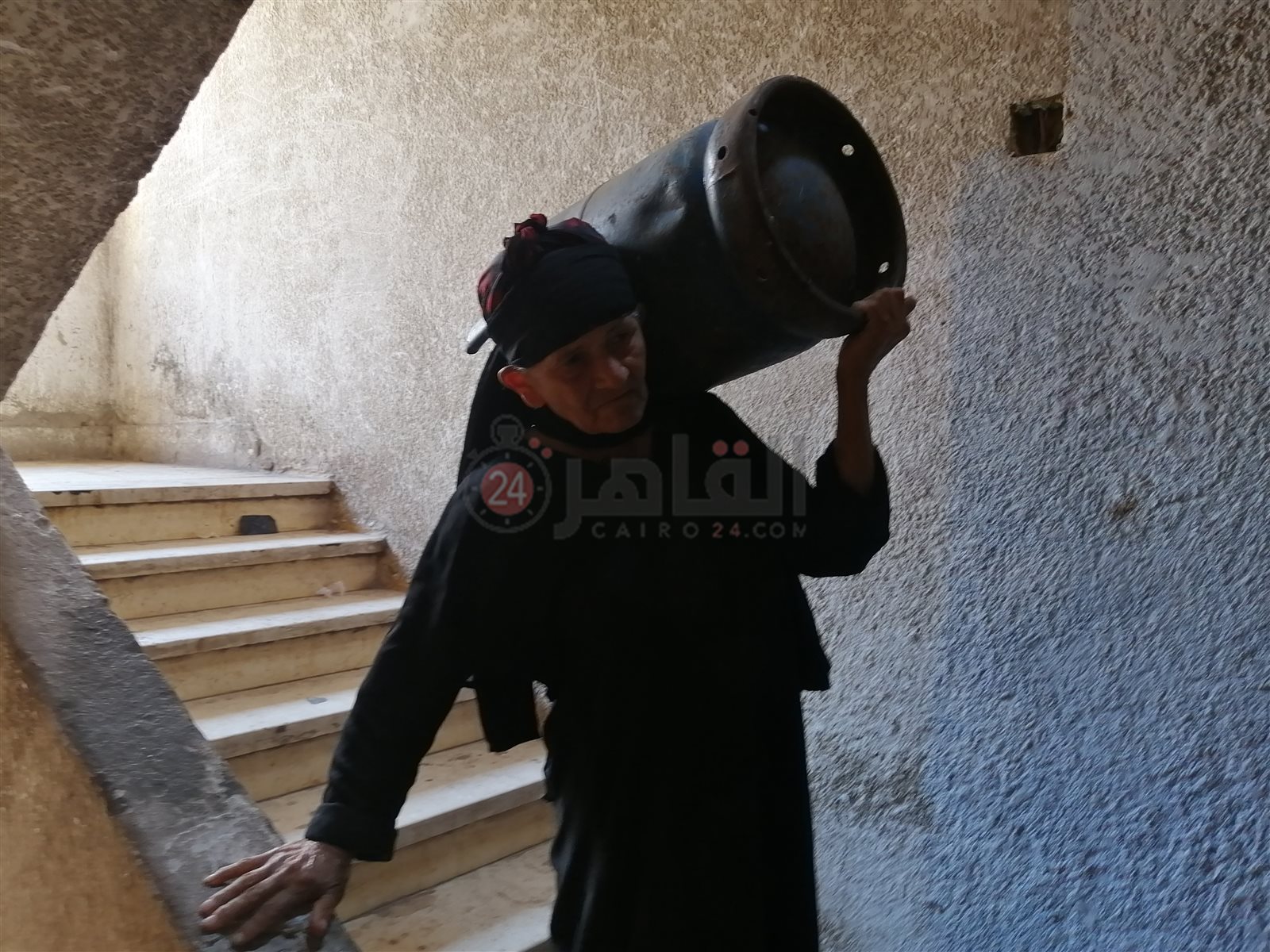 أم مازالت تعمل في تجارة أنابيب البوتاجاز بمفردها، دون مساعدة من أحد، وتحمل بمفردها الأنابيب وتصعد الدرج لتركيبها للمشترين قائلة: جوزت بناتي الثلاثة وجوازاتهم مايلة، أحدهم تعمل في صيدلية والأخرى في أكاديمية، والصغيرة كانت شغالة معايا في الأنابيب وسابتني، واتجوزت وفاضل ابني عنده 37 سنة، ويعمل جزماتي ونفسي يتجوز بس معهوش فلوس.