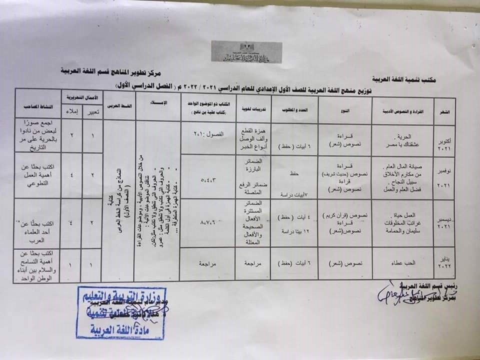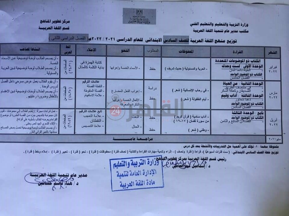 القاهرة 24، حصل على صور لتوزيع منهج اللغة العربية للمراحل التعليمية المختلفة على مدار العام الدراسي.