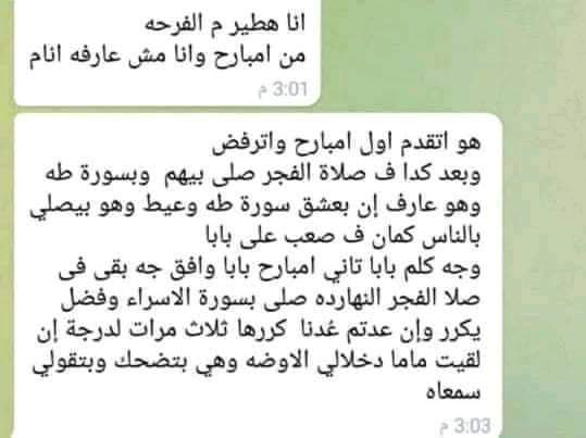 وأظهرت المحادثة أن الشاب تقدم مسبقًا لخطبة الفتاة، إلا أن والدها رفضه، ما اضطر الشاب إلى إتباع أسلوب آخر للتغزل في محبوبته، لكنه خالف كل التوقعات حين قرر التغزل بها باستخدام آيات من القرآن الكريم، وذلك أثناء إمامته للناس بصلاة الفجر، حتى قبل الأب زواجه من ابنته.