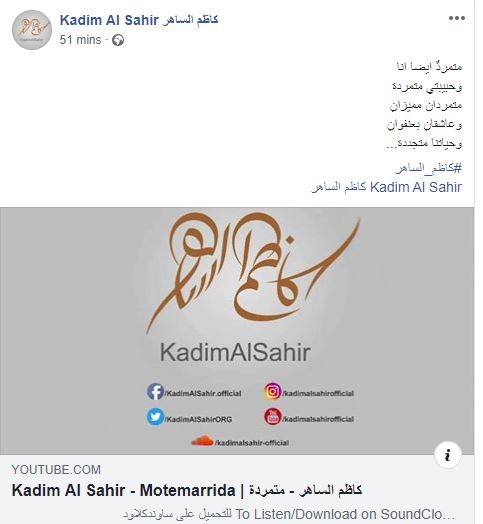 خرج كاظم الساهر عن صمته، ونفى شائعة وفاته، عبر حسابه على فيس بوك، حيث نشر مقطع من أغانيه، وعلّق عليه قائلًا: مُتمردٌ أيضا أنا وحبيبتي متمردة، متمردان مميزانِ وعاشقانِ بعنفوانِ وحياتنا متجددة.
