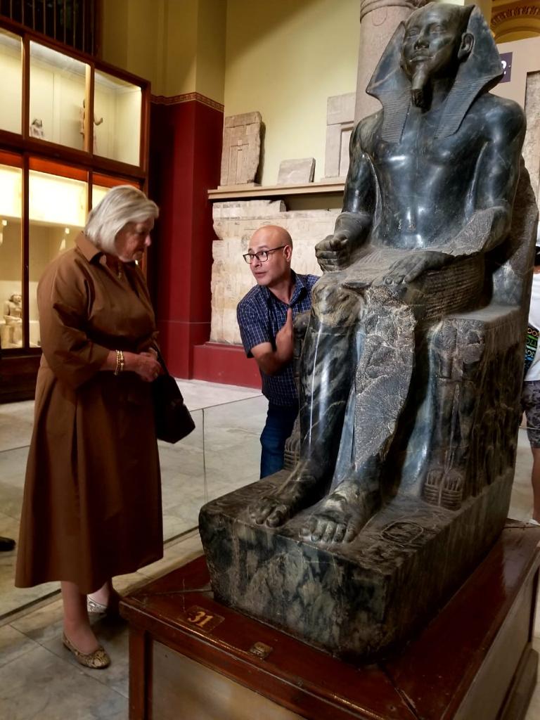 كان في استقبالهما صباح عبد الرازق مدير عام المتحف المصري، والتي اصطحبتهم في جولة لقاعات المتحف المختلفة.
