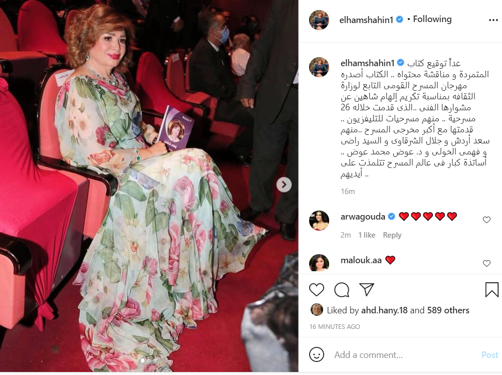 ونشرت إلهام شاهين، صور لها من حفل افتتاح مهرجان المسرح القومي، عبر حسابها الشخصي بموقع الفيديوهات الشهير انستجرام، وعلقت على الصور، قائلة: غدًا توقيع كتاب المتمردة ومناقشة محتواه.. الكتاب أصدره مهرجان المسرح القومي التابع لوزارة الثقافة بمناسبة تكريم إلهام شاهين عن مشوارها الفني.
