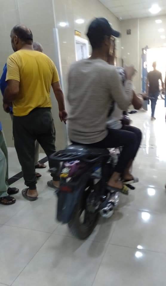 وأظهرت الصور وقوف الدراجة النارية داخل قسم الاستقبال بالمستشفى، واستقلال شخصان للدراجة النارية وخروجهما من القسم إلى الباحة الأمامية للمستشفى.