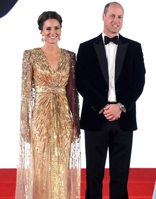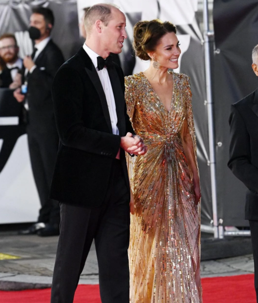 خطف الأمير ويليام وزوجته كيت ميدلتون، أنظار الجمهور على الريد كاربت خلال حضورهم العرض الخاص لفيلم No Time To Die، الذي يعرض حاليا في قاعة ألبرت الملكية بلندن احتفالًا بمرور 25 عاما على سلسلة جميس بوند الجديد.