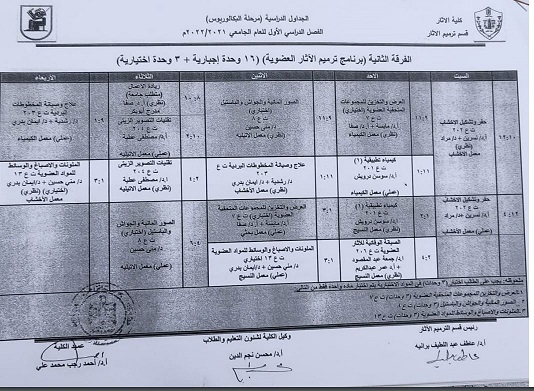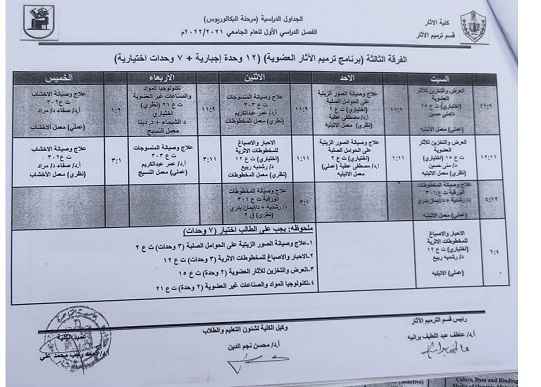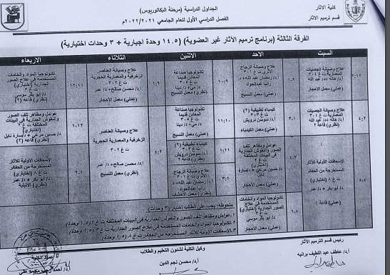 كلية الآثار جامعة القاهرة تعلن عن جدول الفصل الدراسي الأول