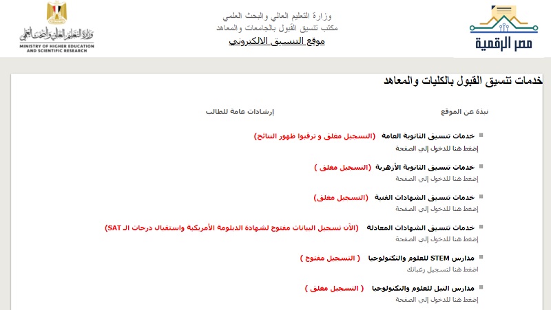 رابط نتيجة تنسيق الشهادات الفنية 2021 وخطوات الاستعلام عبر موقع التنسيق الإلكتروني