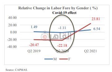 كشفت مذكرة البطالة الصادرة عن وزارة التخطيط والتنمية الاقتصادية، أن القوى العاملة النسائية انخفضت في الربع الثاني من عام 2021 مقارنة بالربع الأول من عام 2021.