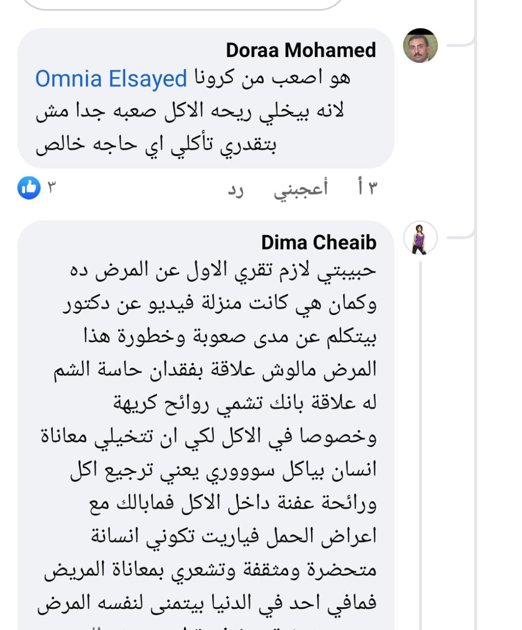 وأوضح آخرون: هو أصعب من كورونا لأنه بيخلي ريحة الأكل صعبة جدًا ومش بتقدري تاكلي حاجة خالص.