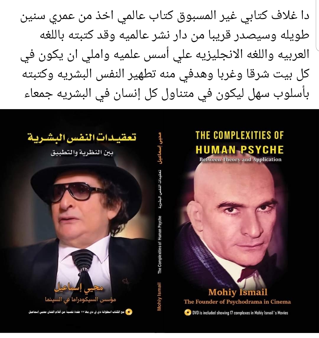 أعلن الفنان محيي إسماعيل، عبر صفحته على موقع فيس بوك، أنه سيصدر قريبا كتابا جديدًا بعنوان تعقيدات النفس البشرية.. بين النظرية والتطبيق، باللغتين العربية والإنجليزية، وسيكون مرفق مع الكتاب أسطوانة DVD، تحوي داخلها مشاهد لـ 17 عقدة نفسية من أفلام الفنان محيى إسماعيل.