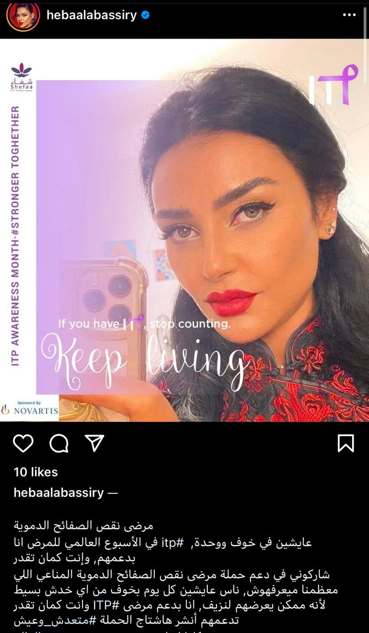حرص عدد كبير من الفنانين ومشاهير السوشيال ميديا، وكذلك الرياضين في مصر، على دعم مرضى نقص صفائح الدم المناعي ITP في الأسبوع العالمي للمرض، لتمتلئ صفحاتهم الرسمية على مواقع التواصل الاجتماعي، برسائل دعم للمرضى، ومشاركة صورهم باللون البنفسجي المميز لهذا المرض عالميًا ضمن حملة متعدش وعيش، للتوعية بمرض ITP، بالتعاون مع جمعية شفاء وهي مجموعة دعم المرضى في مصر.