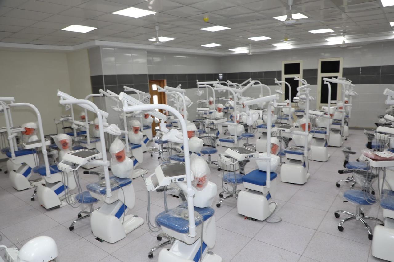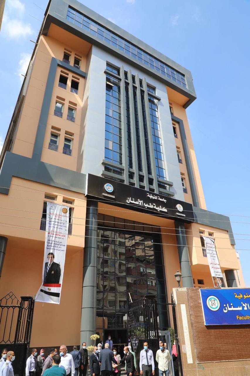 وعلى هامش الزيارة افتتح محافظ المنوفية ووزير التعليم العالي ورئيس الجامعة كلية طب الأسنان بالمجمع الطبي بشبين الكوم علي مساحة 7354م 2، حيث تم قص الشريط وإزاحة الستار عن اللوحة التذكارية للكلية والتي تم تجهيزها على أعلى مستوى طبقا للمعايير الهندسية والجودة اللازمة، وتتكون الكلية من دور أرضى و7 أدوار علوية وتضم مدرجات وقاعات سيميوليتور ومعامل مزودة بأحدث الأجهزة وقاعات تدريس وعيادات التدريب العملي والمكاتب الإدارية، حيث تم الإنتهاء من كامل الهيكل الخرساني للمبنى والتشطيبات الخارجية للواجهات، كما تم الإنتهاء من أعمال طرح وتوريد أجهزة السميليتور وأجهزة الأسنان وبنشات المعمل وقواطيع عيادات الأسنان والكبنت الملحق بوحدات الأسنان.