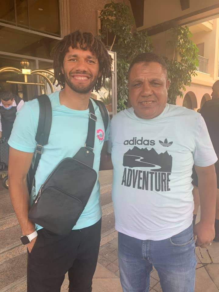 وكان ناصر النني، والد نجم أرسنال، في استقبال نجله والذي وصل مع مصطفي محمد، مهاجم جالطة سراي التركي للانضمام إلى معسكر منتخب مصر.