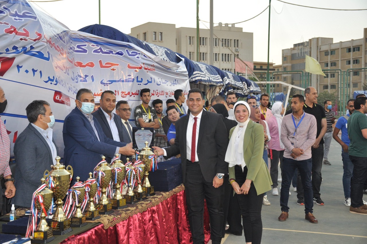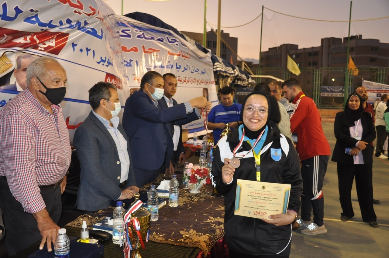 جاء ذلك بحضور الدكتور طايع عبد اللطيف، مستشار وزير التعليم العالي للأنشطة الطلابية، والدكتور حسن يونس، نائب رئيس الجامعة للدراسات العليا والبحوث، والدكتور رضا صالح نائب رئيس الجامعة لشئون خدمة المجتمع وتنمية البيئة، والدكتور محمد عبد العال، نائب رئيس الجامعة لشئون التعليم والطلاب وعمداء الكليات، والدكتور رشدي العدوي منسق عام الأنشطة الطلابية بالجامعة، وأمين عام الجامعة الدكتور على صبري، والدكتور أحمد عبد ربه مدير عام الإدارة العامة للنشاط الرياضي الطلابي بوزارة الشباب والرياضة.