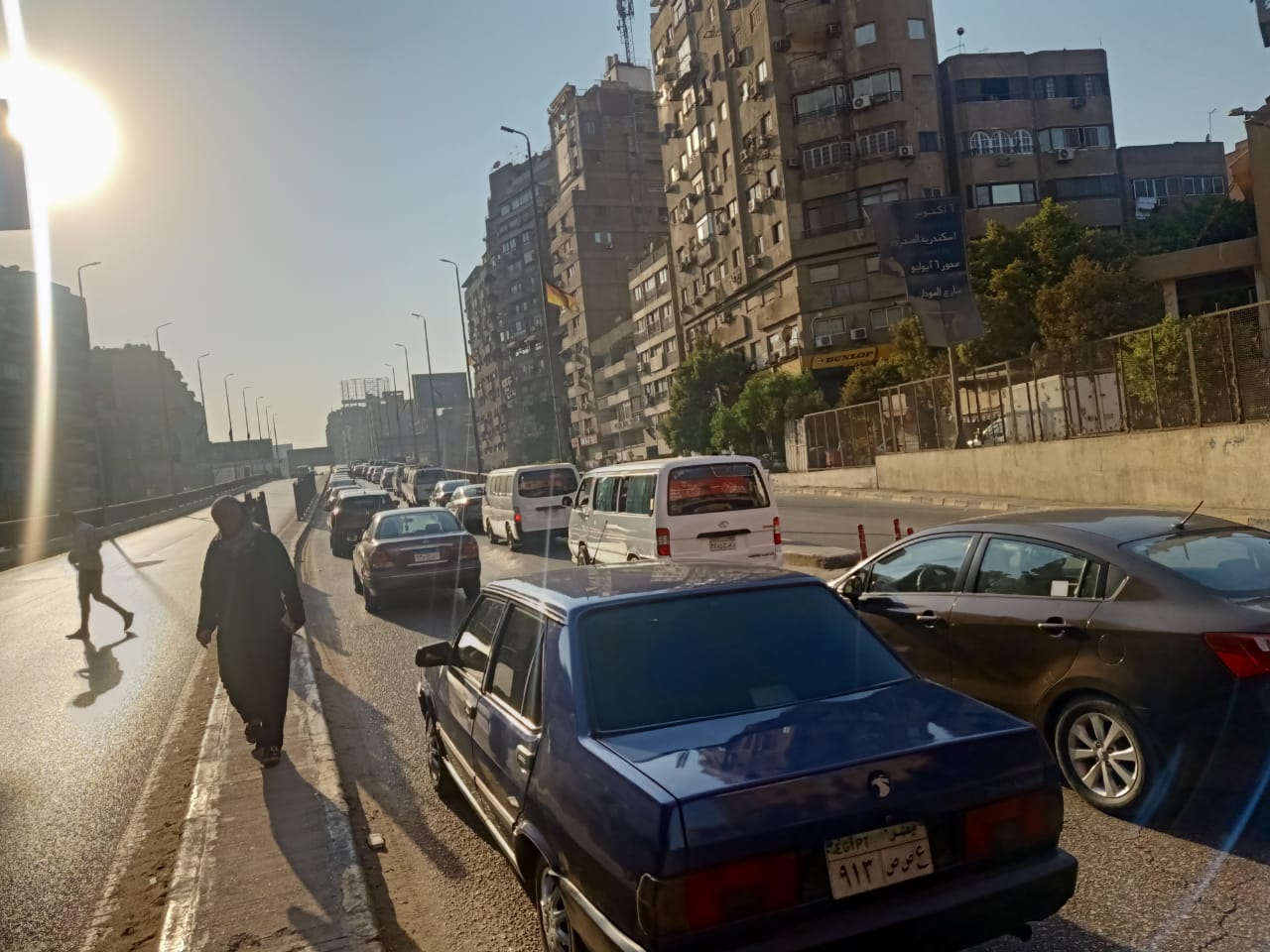 تكدس مروري بطريق المحور وشارع جسر السويس | صور