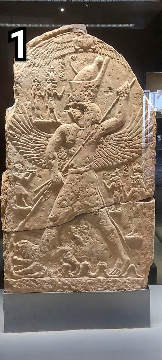 - لوحة عليها نقش بالبارز يمثل المعبود حورس برأس صقر يرتدي التاج المزدوج يقف فوق المعبود ست في هيئة الثعبان ويطعنه بالحربة واللوحة تمثل إنتصار حورس على ست في نهاية الأسطورة المصرية، وهو تجسد لإنتصار الخير والعدل على الشر، مصنوعة من الحجر الرملي، وتعود إلى العصر الروماني.