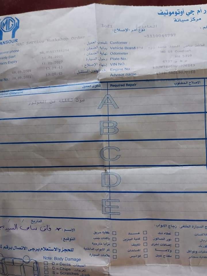 قالت السيدة إنها قامت بشراء سيارة من ماركة MG zs موديل 2021 كاش، من معرض البلال، بكامب شيزار بمحافظة الإسكندرية، مشيرة إلى أنه بعد 6 أشهر غيرت زيت للسيارة في التوكيل بعدما سارت 5000 كم، وفور تغيير الزيت اتضح هناك صوت في ماكينة السيارة.