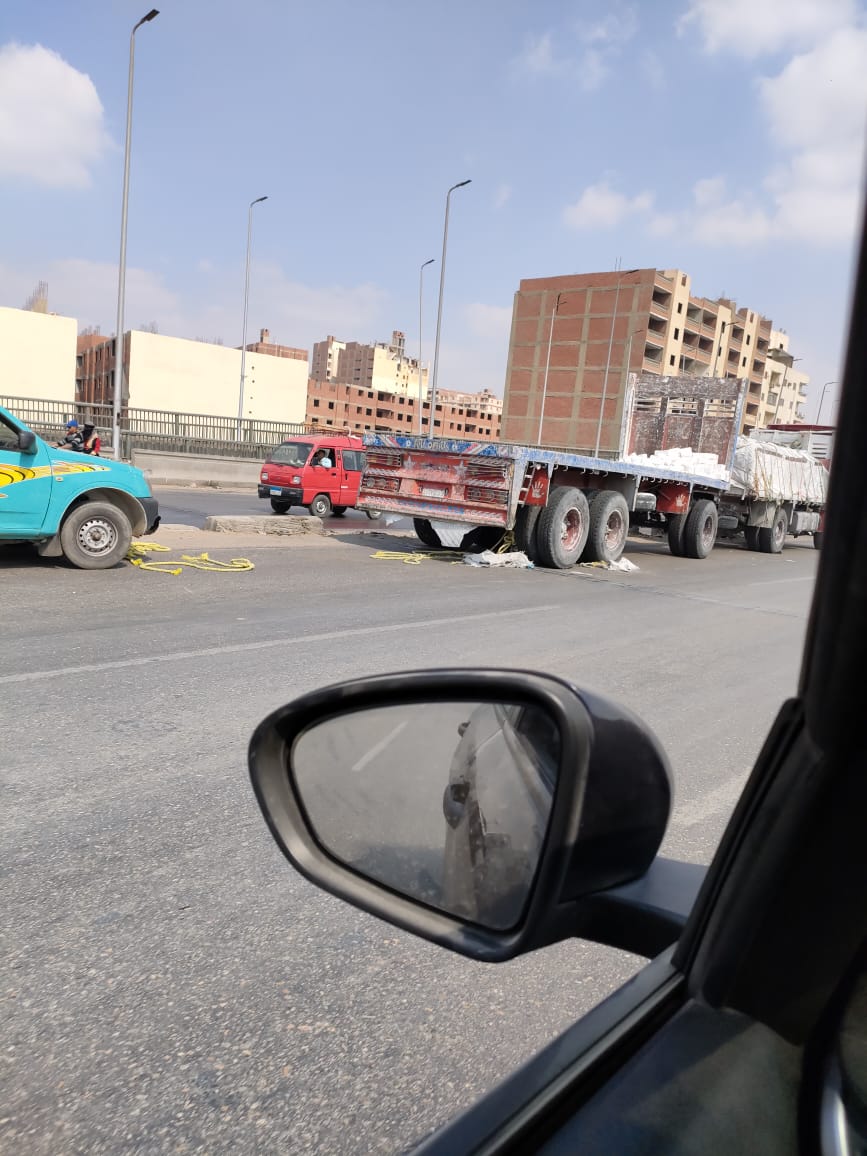 وتلقت الإدارة العامة للمرور بلاغًا يفيد بانقلاب سيارة نقل كونتينر، وسيارة مقطورة محملة بالطوب، وعلى الفور انتقل رجال المرور إلى مكان الواقعتين لتسيير حركة السير، كما جرى التعامل مع الحادث.