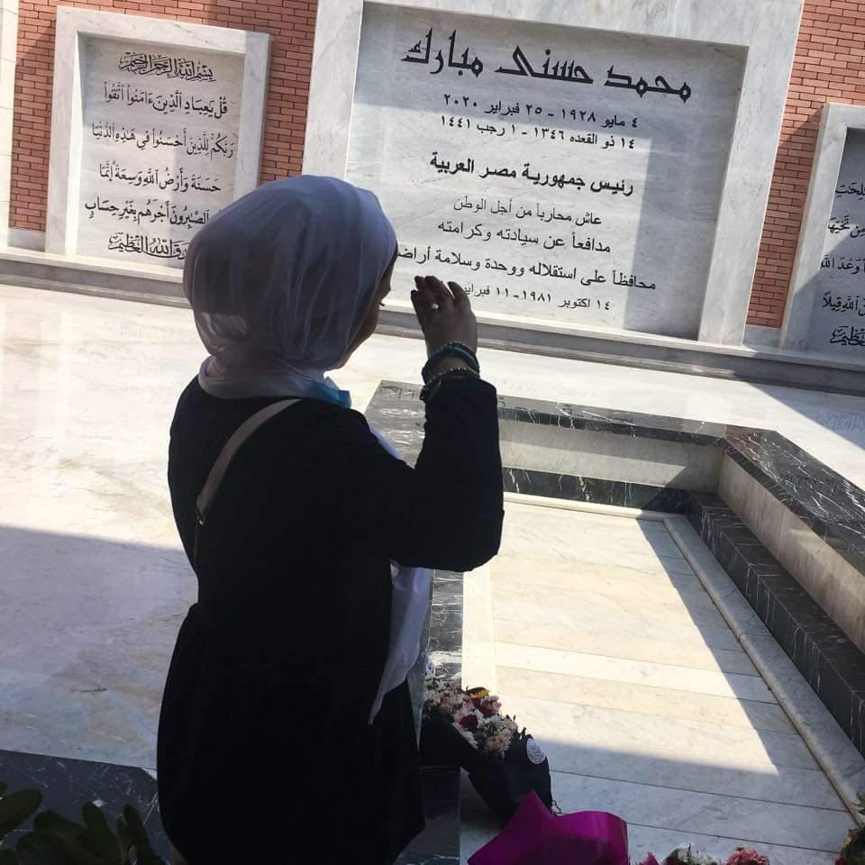 سوزان مبارك تزور قبر زوجها في ذكرى نصر أكتوبر