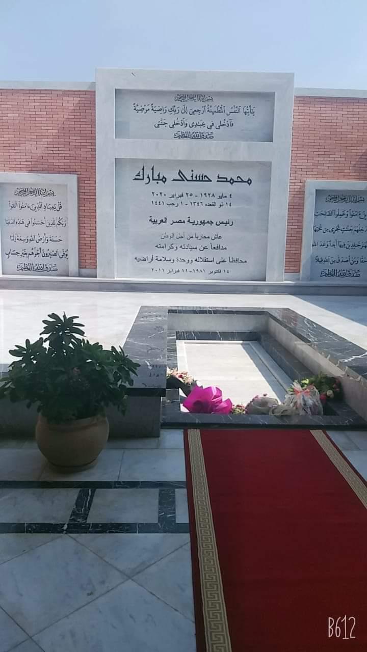 علاء وجمال من أمام قبر الراحل حسني مبارك