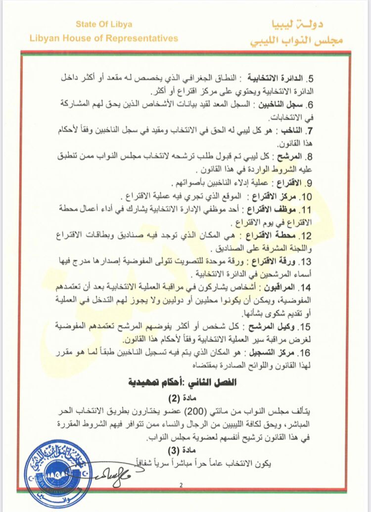وحصل القاهرة 24 على نص قانون الانتخابات التشريعية الليبية المقبلة، والذي حمل رقم 2 لسنة 2021.