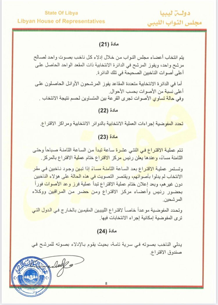 ننشر النص الكامل لقانون الانتخابات البرلمانية الليبية| مستندات