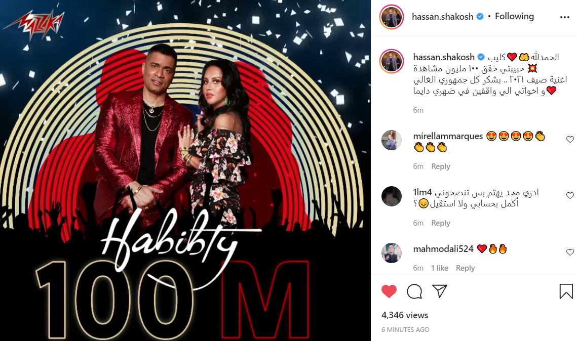 حسن شاكوش يحتفل بتخطي أغنيته حبيبتي حاجز الـ100 مليون مشاهدة على يوتيوب