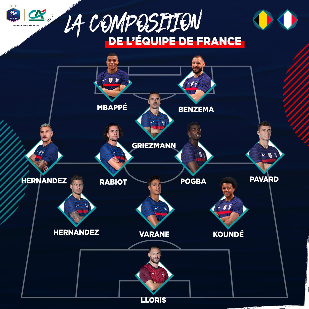 وجاء تشكيل المنتخب الفرنسي كالتالي:-
